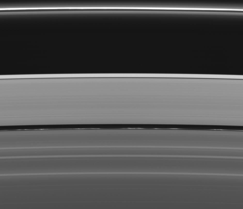 Squinting at this view of Saturn's rings reveals not one but two of the four narrow ringlets in the Encke Gap (325 kilometers, or 200 miles, wide). The innermost of the two ringlets is much brighter and full of clumps.