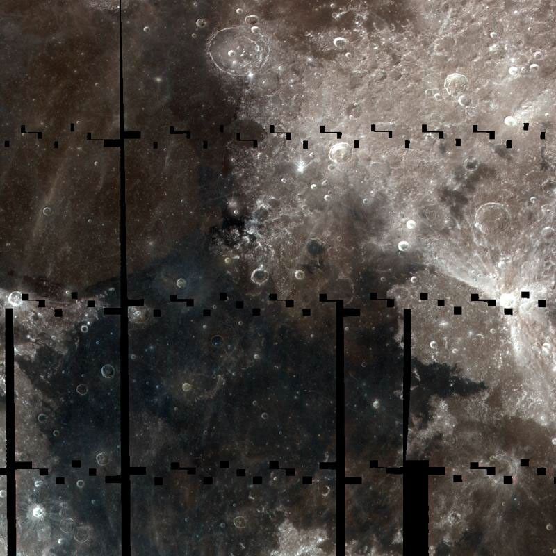 The LROC WAC is busily mapping the Moon in 7 UV and visible wavelengths (320 nm through 689 nm). This color composite shows 320 nm light in blue, 415 nm in green and 689 nm in red, scene is ~1000 km (~621 miles) wide.