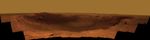 This view combines images taken through three different Pancam filters admitting light with wavelengths centered at 753 nanometers (near infrared), 535 nanometers (green) and 432 nanometers (violet). This "natural color" is the rover team's best estimate of what the scene would look like if we were there and able to see it with our own eyes. Seams have been eliminated from the sky portion of the mosaic to better simulate the vista a person standing on Mars would see.