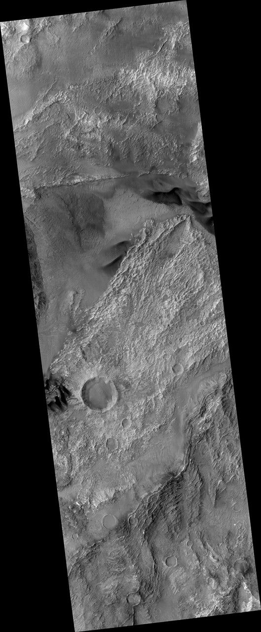 This image captured by NASA's Mars Reconnaissance Orbiter (MRO) covers diverse surface units on the floor of eastern Coprates Chasma in eastern Valles Marineris.
