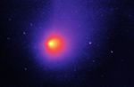 NASA's new Spitzer Space Telescope has captured an image of an unusual comet that experiences frequent outbursts, which produce abrupt changes in brightness. Periodic comet Schwassmann-Wachmann I (P/SW-1) has a nearly circular orbit just outside that of Jupiter, with an orbital period of 14.9 years. It is thought that the outbursts arise from the build-up of internal gas pressure as the heat of the Sun slowly evaporates frozen carbon dioxide and carbon monoxide beneath the blackened crust of the comet nucleus. When the internal pressure exceeds the strength of the overlying crust, a rupture occurs, and a burst of gas and dust fragments is ejected into space at speeds of 450 miles per hour (200 meters per second).