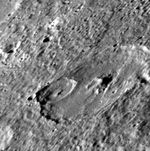 While many of the most spectacular craters on Mercury are young and rayed, the vast majority are older and have been modified by both internal and external forces over time. The large 90-km crater in this image has been deformed by a lobate scarp and battered by craters up to 30 km in diameter.