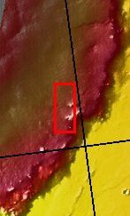 This image shows just a small part of the eastern flank of Olympus Mons. On the far left side of the image a small volcanic cone can be seen. The shadow helps to identify this feature.