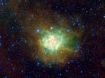 In the heart of the nebula, which looks surprisingly like a Valentine's heart in WISE's view, massive new stars are emerging. The intense radiation from these stars heats up the cloud. The highest-energy light from the stars rips electrons from hydrogen atoms, which then recombine with the atoms and emit visible light.