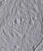 The finest details on the surface of Saturn's moon Enceladus are revealed in this 30-meter (100-foot) per-pixel, enhanced-color image taken during Cassini's closest-ever encounter with Enceladus on March 9, 2005.