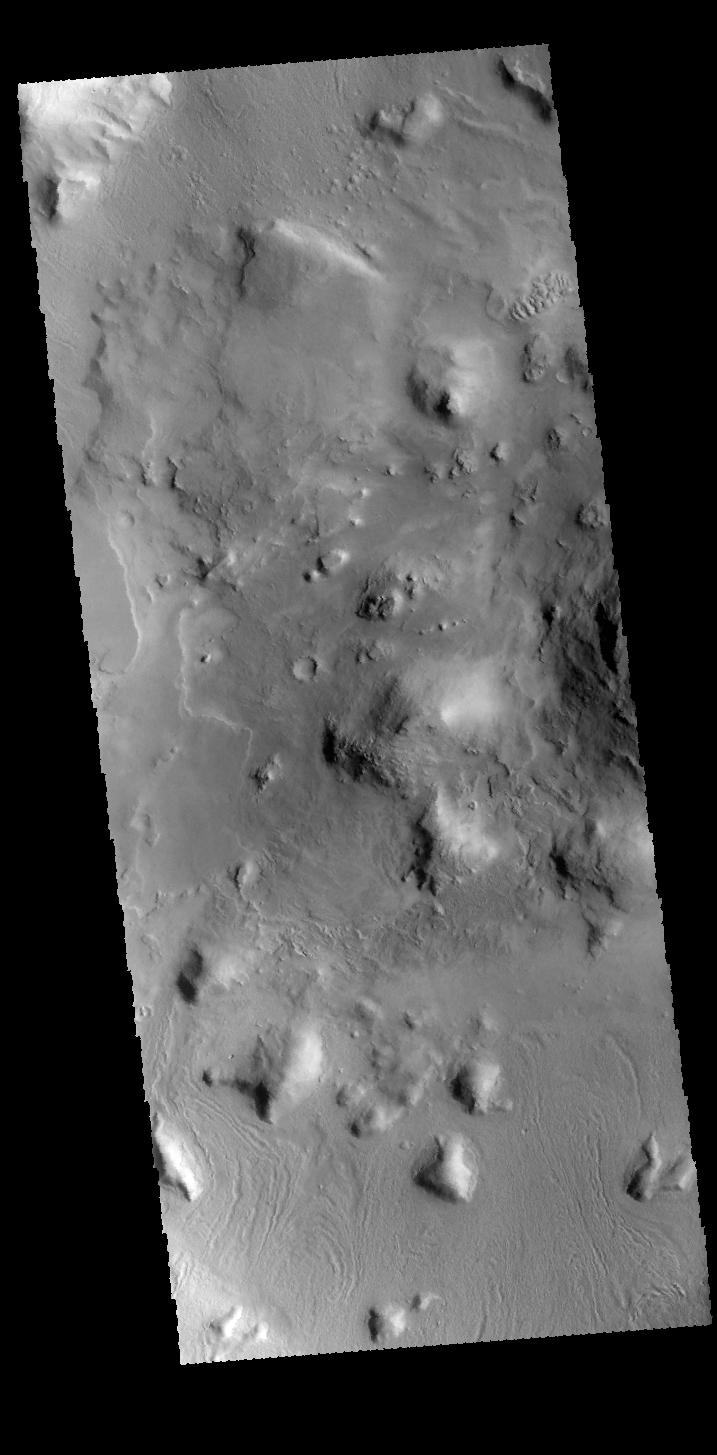 This VIS image shows part of the floor of an unnamed crater on the northern edge of Terra Sabaea. Many processes have been at work to modify the initial floor to create the hills and other features.