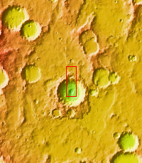 The THEMIS VIS camera contains 5 filters. The data from different filters can be combined in multiple ways to create a false color image. These false color images may reveal subtle variations of the surface not easily identified in a single band image. Today's false color image shows part of the floor of an unnamed crater in Noachis Terra. A small field of dunes is visible in the bottom left corner of the image.