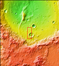 The THEMIS VIS camera contains 5 filters. The data from different filters can be combined in multiple ways to create a false color image. These false color images may reveal subtle variations of the surface not easily identified in a single band image. Today's false color image shows an unnamed crater located on the floor of Newton Crater in Terra Sirenum.