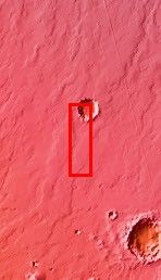 Just like yesterday's crater, this crater was an obstacle to material flowing around it. In this case the material is lava from the Arsia Mons volcano. The diverted flows formed a downhill "tail" south of the crater. This "tail" is a depression where lava failed to fill in the region behind the crater.