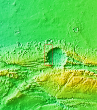Numerous channels dissect the rim of this large crater located on Acheron Fossae.