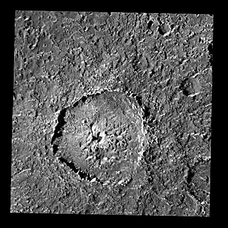 This single-frame image shows crater Tindr on Jupiter's satellite Callisto, the moon with the oldest surface of the four so-called "Galilean" satellites (of which Callisto is also most distant from Jupiter). The diameter of this impact feature is about 70 km (43.5 miles). Tindris situated close to Callisto's equator at a longitude of about 5 degrees East. The image was obtained in September 1997 with the Solid State Imaging (SSI) system onboard NASA's Galileo spacecraft, which has been orbiting the Solar System's largest planet since December 1995.
