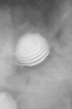 Craters near the edge of the retreating south polar seasonal frost cap often have fog in them, this time of year. This Mars Global Surveyor (MGS) Mars Orbiter Camera (MOC) wide angle red image was acquired just a few days ago on July 13, 2003. It shows a crater, 36 km (22 mi) across, that is enveloped in fog. This picture was taken as a context frame for a high resolution view that was intended to show dunes on the floor of the crater. That high resolution view was frustrated by thick fog that hid the dunes from view. This wide angle context frame shows that winds from the lower right (southeast) were blowing over the crater, causing the fog to bunch up in a wavy, rippled pattern. Winds streaming off the polar cap toward the north create a variety of patterns in the fogs formed by water ice or vapor as the seasonal cap retreats during southern spring. This picture is located at 66.4°S, 208.6°W, sunlight illuminates the scene from the upper left (northwest).