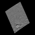 This image is centered at 82.5 south latitude and 62.6 west longitude, and covers an area approximately 370 kilometers (220 miles) by 280 kilometers (170 miles). North is toward the top of the image. This image was taken on May 6, 1997 by the Solid State Imaging system (CCD) on board NASA's Galileo spacecraft at a resolution of 676 meters (417 feet) per picture element.