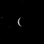 Lit terrain seen here is in the area between the trailing hemisphere and Saturn-facing side of Enceladus (504 kilometers, or 313 miles across). North on Enceladus is up and rotated 3 degrees to the left.