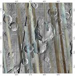 This is the first version of tile 750, one of 209 tiles just delivered to the PDS. It shows a part of the planet called Tyrrhena Terra in the ancient, heavily cratered highlands. The colored strips are CRISM multispectral survey data acquired over several months, in which each pixel has a calibrated 72-color spectrum of Mars. The three wavelengths shown are 2.53, 1.50, and 1.08 micrometers in the red, green, and blue image planes respectively. At these wavelengths, rocky areas appear brown, dusty areas appear tan, and regions with hazy atmosphere appear bluish. Note that there is a large difference in brightness between strips, because there is no correction for the lighting conditions at the time of each observation. The gray areas between the strips are from an earlier mosaic of the planet taken by the Thermal Emission Imaging System (THEMIS) instrument on Mars Odyssey, and are included only for context. Ultimately the multispectral survey will cover nearly all of this area.