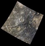 This false-color image is located just at the edge of the Rembrandt Basin. The basin edge crosses the newly named Enterprise Rupes. This is just a small meeting of two titans, as Enterprise extends for ~822 km (510 mi.), and Rembrandt is about 723 km (450 mi) in diameter. The edge of Rembrandt is loosely marked with a pink line, and Enterprise with a yellow line.