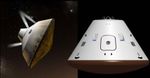 This set of artist's concepts shows NASA's Mars Science Laboratory cruise capsule and NASA's Orion spacecraft, which is being built now at NASA's Johnson Space Center and will one day send astronauts to Mars. The rover Curiosity is tucked inside of the Mars Science Laboratory cruise vehicle like human beings would be tucked inside Orion.