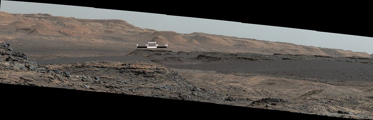 The scene combines several images taken on Sept. 25, 2015, during the 1,115th Martian day, or sol, of Curiosity's work on Mars. The images are from Mastcam's right-eye camera, which has a telephoto lens. The view is toward south-southwest.