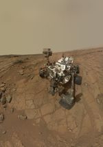 The rover is positioned at a patch of flat outcrop called "John Klein," which was selected as the site for the first rock-drilling activities by Curiosity. The self-portrait was acquired to document the drilling site.