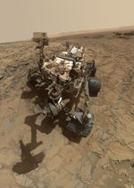 This portrait of the rover was designed to show the Chemistry and Camera (ChemCam) instrument atop the rover appearing level. This causes the horizon to appear to tilt toward the left, but in reality it is fairly flat.