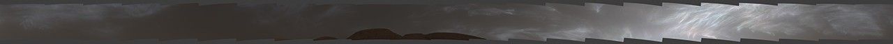NASA's Curiosity Mars rover spotted these iridescent, or "mother of pearl," clouds on March 5, 2021, the 3,048th Martian day, or sol, of the mission. Seen here are five images stitched together from a much wider panorama taken by the rover's Mast Camera, or Mastcam. The full panorama (Figure 1) was stitched together from 23 images.