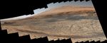Stitched together from 116 images, this view captured by NASA's Curiosity Mars rover shows the path it will take in the summer of 2020 as it drives to the "sulfate-bearing unit," the next layer it will be investigating on the 3-mile-tall (5-kilometer-tall) Mount Sharp. Curiosity has to drive around a large sand patch in order to reach a place where it can ascend to the sulfate-rich region. The upper part of the mountain looms at the top image. The images were taken by the rover's Mast Camera, or Mastcam, on Jan. 10, 2020, the 2,641st Martian day, or sol, of the mission.