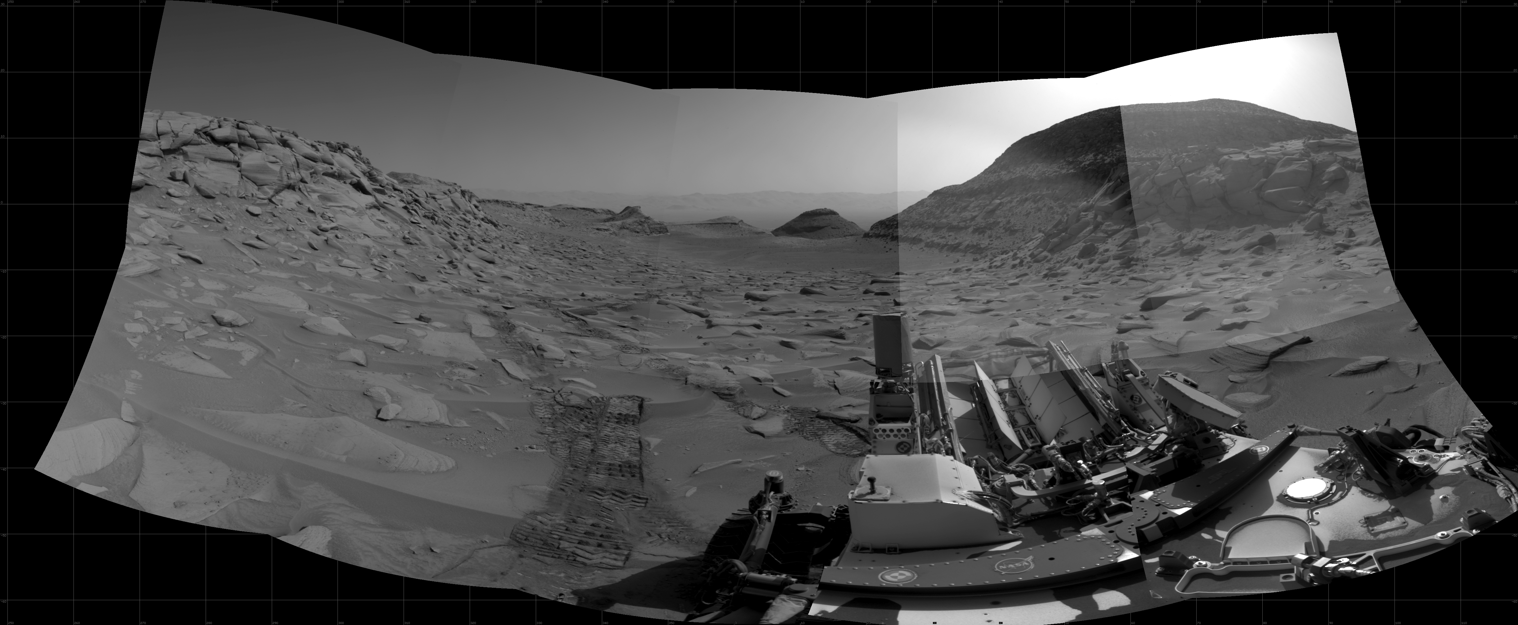 Curiosity is ascending the foothills of Mount Sharp, a 3-mile-tall (5-kilometer-tall) mountain found within Gale Crater; the crater rim is visible roughly 25 miles (40 kilometers) away. And because skies were so clear, a mountain beyond the crater rim can be seen, even though it's 54 miles (87 kilometers) outside of Gale.