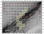 This map shows all the quadrant themes for NASA's Curiosity Mars rover, which is currently in the Roraima quadrant seen at the bottom. The red oval indicates the landing ellipse where the rover was targeted to touch down in 2012. The yellow-tinted quadrants are areas the rover has driven through since then. Themes are chosen in advance of the rover's arrival in a new quadrant; the rover's path couldn't be planned until after the team knew where it landed. Martian latitude and longitude is provided around the outside of the map.