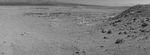 The view extends from south-southeast at left to west-southwest at right. Its component frames were taken by Curiosity's Navigation Camera (Navcam) on the 588th Martian day, or sol, of the rover's work on Mars (April 1, 2014). Curiosity had driven 150 feet (45.6 meters) on Sol 588 before imaging this scene. On Sol 589, it drove 98 feet (30 meters) further to a location left of center in this view, chosen as a vantage point for extensive imaging of the various rock types exposed at the Kimberley. The Sol 589 drive took the rover past the mound to the west at the Sol 588 location (at left in this image).