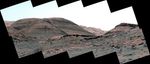 Behind the dark boulders – in the middle of the image – is a mountain that makes up part of the sulfate-bearing region; layers within this region can be seen as stripes across the mountainside. These layers represent an excellent record of how Mars' water and climate changed over time.