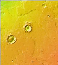 This VIS image shows part of an unnamed crater on the northwest margin of Daedaia Planum. Lava flows are visible around the crater rim. The interior of the crater has been filled by a material that is now being eroded to create the ridge and valley formation at the upper left part of the image.