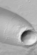 This Mars Global Surveyor (MGS) Mars Orbiter Camera (MOC) image shows a complex streak formed by deposition and erosion of sediment by wind in the lee of an impact crater in western Daedalia Planum. The winds needed to create this feature blew from the southeast (from the lower right). The picture covers an area 3 km (1.9 mi) wide near 10.1°S, 133.7°W. Sunlight illuminates the scene from the upper left.