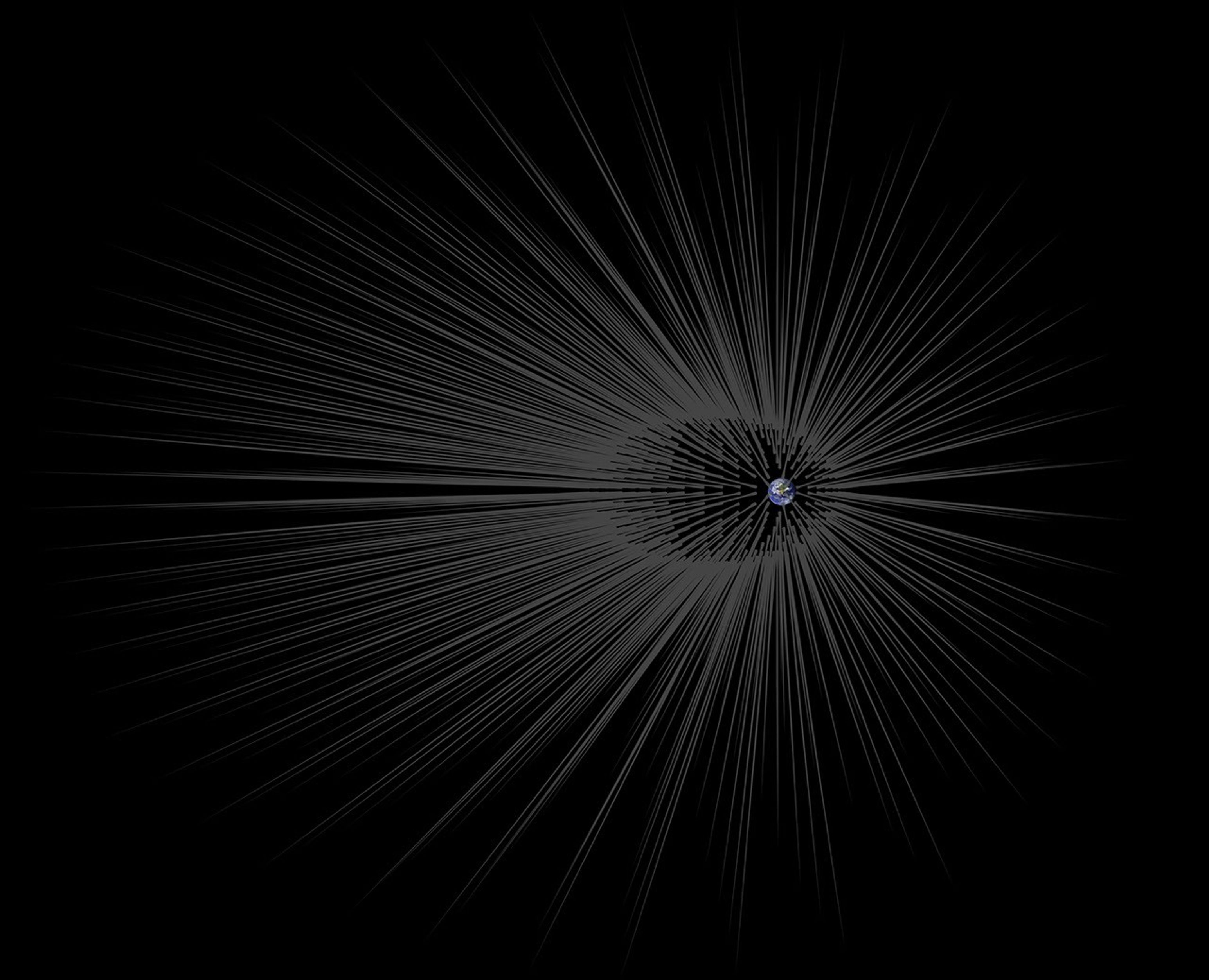 This illustration shows Earth surrounded by filaments of dark matter called "hairs," which are proposed in a study in the Astrophysical Journal by Gary Prézeau of NASA's Jet Propulsion Laboratory, Pasadena, California.