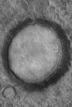 This Mars Global Surveyor (MGS) Mars Orbiter Camera (MOC) image shows a nearly-filled impact crater on the northern plains.