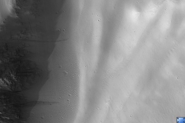 This image shows that the slope streak forming process altered the pre-existing surface both by excavating material and depositing it. The fine scalloped texture of the surrounding surface is not present within the streak, and there are low linear mounds within the streak that are not seen outside. Their absence outside the streak indicates that the formation of the mounds resulted from the streak formation process.