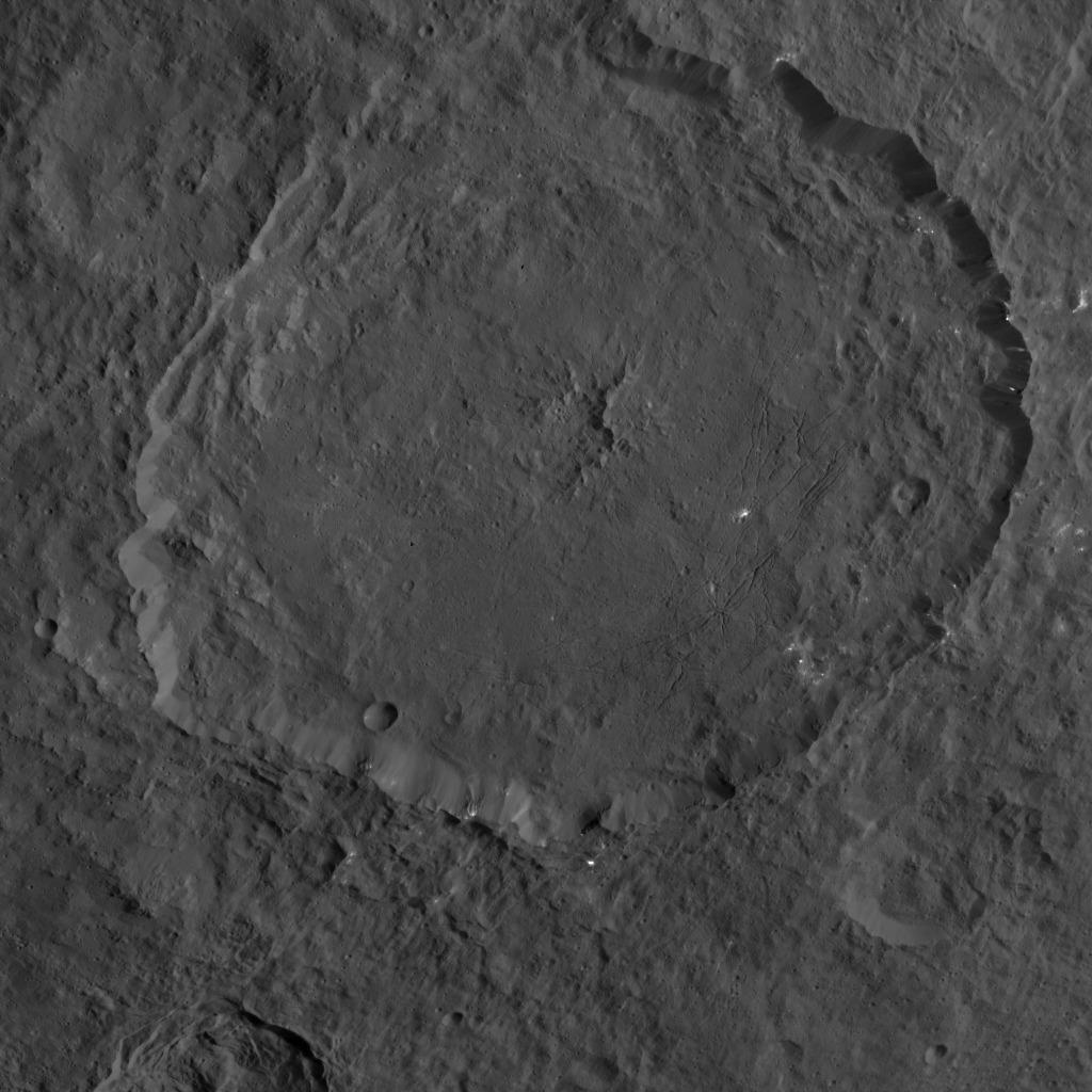 This image, taken by NASA's Dawn spacecraft, shows a portion of the northern hemisphere of dwarf planet Ceres from an altitude of 915 miles (1,470 kilometers). The image was taken on Sept. 25, 2015, and has a resolution of 450 feet (140 meters) per pixel.
