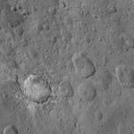 This image from NASA's Dawn spacecraft shows the dramatic-looking crater named Haulani on Ceres. This relatively young crater was named for a Hawaiian plant goddess, and measures 19 miles (31 kilometers) in diameter. The crater features a central ridge and streaks of bright material on its walls. Ejected material from the crater's formation blankets the surrounding area, muting the appearance of older impact features.