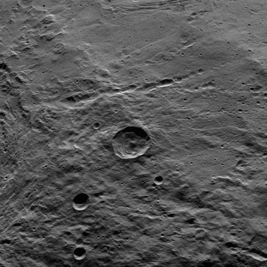 Dawn took this image on Oct. 14, 2015, from an altitude of 915 miles (1,470 kilometers). It has a resolution of 450 feet (140 meters) per pixel.