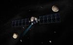 Artist's concept of the Dawn spacecraft with Vesta and Ceres.