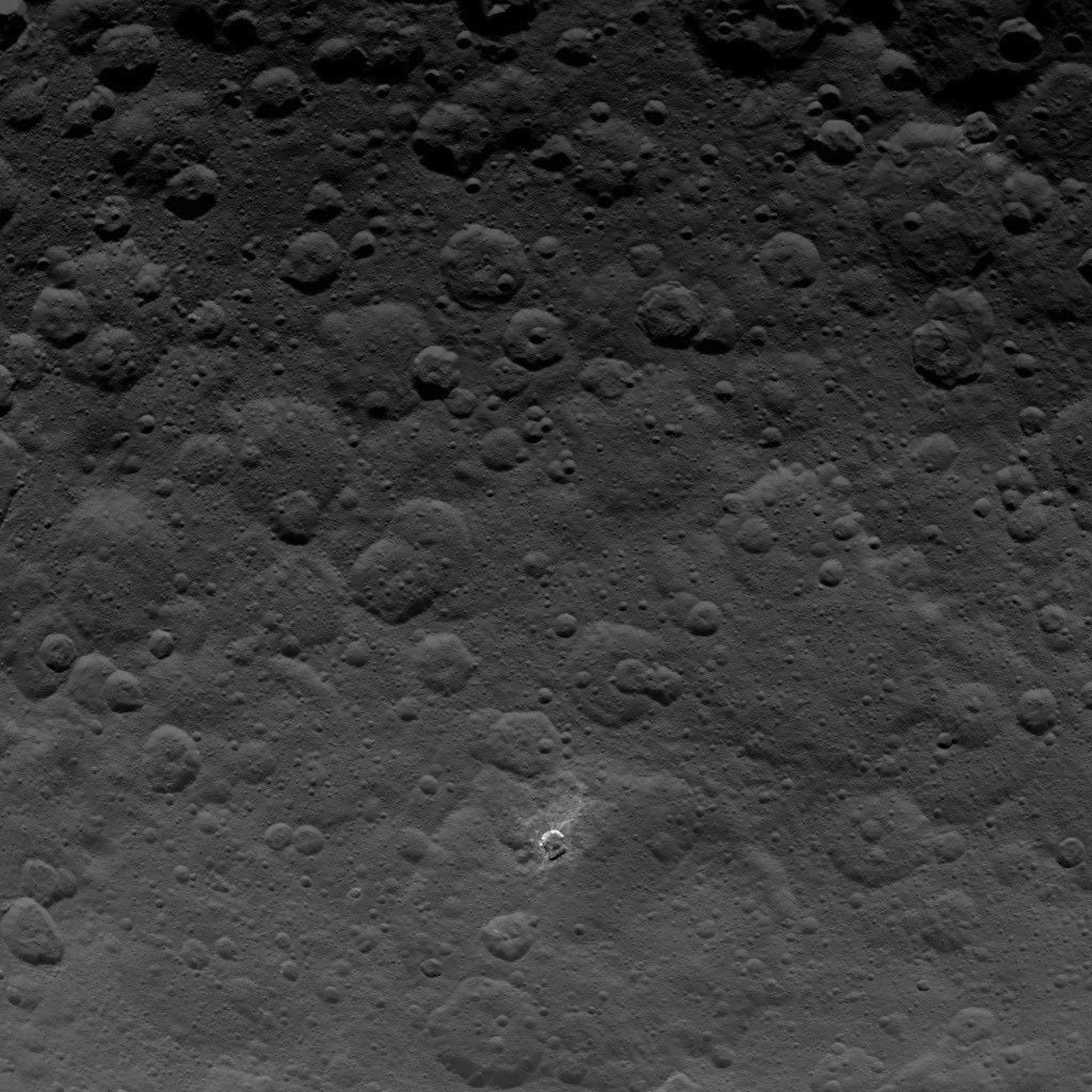 This image, taken by NASA's Dawn spacecraft, shows a portion of the northern hemisphere of dwarf planet Ceres from an altitude of 2,700 miles (4,400 kilometers). The image, with a resolution of 1,400 feet (410 meters) per pixel, was taken on June 24, 2015.