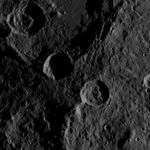 This southern hemisphere scene from dwarf planet Ceres encompasses parts of the craters Mondamin and Darzamat. Mondamin, which is 78 miles (126 kilometers) wide, is the large crater located in the top half of the image. Darzamat, at 57 miles (92 kilometers) wide, is at bottom-right.
