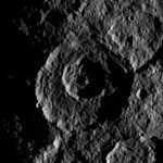 The low angle of illumination brings this pair of nested craters near Ceres' south pole into sharp relief. The larger exterior crater is 53 miles (85 kilometers) in diameter and more than 1.6 miles (2.5 kilometers) deep.