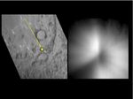 This pair of images shows a before-and-after comparison of the area on comet Tempel 1 targeted by an impactor from NASA's Deep Impact spacecraft in July 2005. The left-hand image is one of the last obtained of the Tempel 1 surface by the impactor's high resolution imager before the impactor hit the surface. An arrow shows the direction the impactor traveled toward the surface, with a yellow spot that shows the impact target. The right-hand image shows the plume of material kicked up by the impact that obscures the surface. It was obtained about 700 seconds after the impact.
