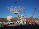 After the reflector skeleton was bolted into place, engineers placed what's called a quadripod into the center of the structure. A four-legged support structure weighing 16 ½ tons, the quadripod is fitted with a curved subreflector that will direct radio frequency signals from deep space that bounce off the main reflector into the antenna's pedestal where the antenna's receivers are housed.
