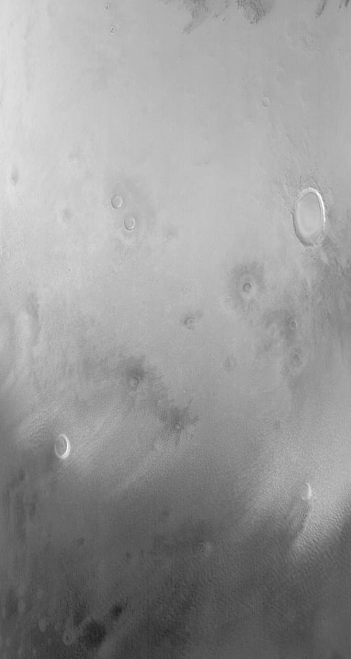 Spring is upon the martian northern hemisphere, and the north polar cap is shrinking. This Mars Global Surveyor (MGS) Mars Orbiter Camera (MOC) image, acquired on 12 June 2004, shows the retreating edge of the seasonal north polar cap near 70°N, 209°W. Low clouds and fogs stream away from the cap edge as it sublimes away. North is approximately up and the image covers an area roughly 500 km (311 mi) across. Sunlight illuminates the scene from the lower left. The crater containing a thick mound of material near the right-center of the image is Korolev.