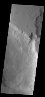 Today's VIS image shows a delta deposit where a tributary channel enters Ismenius Cavus in Mamers Valles.