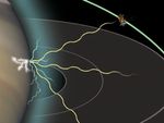 This artist concept shows how Cassini is able to detect radio signals from lightning on Saturn. Lightning strokes emit electromagnetic energy across a broad range of wavelengths, including the visual wavelengths we see and long radio wavelengths that cause static on an AM radio during a thunderstorm. Some of the radio waves propagate upwards and can be detected at long distances by the radio and plasma wave science instrument on Cassini.