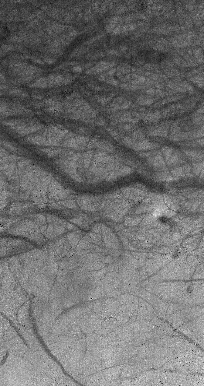 This Mars Global Surveyor (MGS) Mars Orbiter Camera (MOC) image shows a dust devil (right center) and a plethora of streaks created by previous dust devils, on the eastern floor of Mendel Crater. Dust devils are common at middle to high latitudes in the southern hemisphere during the spring and summer seasons.