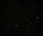 The red, yellow and green colors represent black holes seen previously by NASA's Chandra X-ray Observatory (with red denoting the lowest-energy X-ray light). The color blue shows black holes recently detected by NuSTAR, which was uniquely designed to detect the highest-energy X-ray light. The black holes in this picture are between about 3 to 10 billion light-years away.