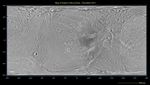 The map is a simple cylindrical (equidistant) projection and has a scale of 502 feet (153 meters) per pixel at the equator. The resolution of the map is 64 pixels per degree. The mean radius of Dione used for projection of this map is 350 miles (563 kilometers).